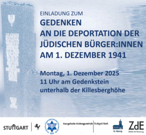 Mo 1. Dez. 2025, 11:00 Uhr, Gedenkstein unterhalb der Killesberghöhe: Gedenken an die Deportation von mehr als 1000 jüdischen Menschen nach Riga am 1. Dezember 1941